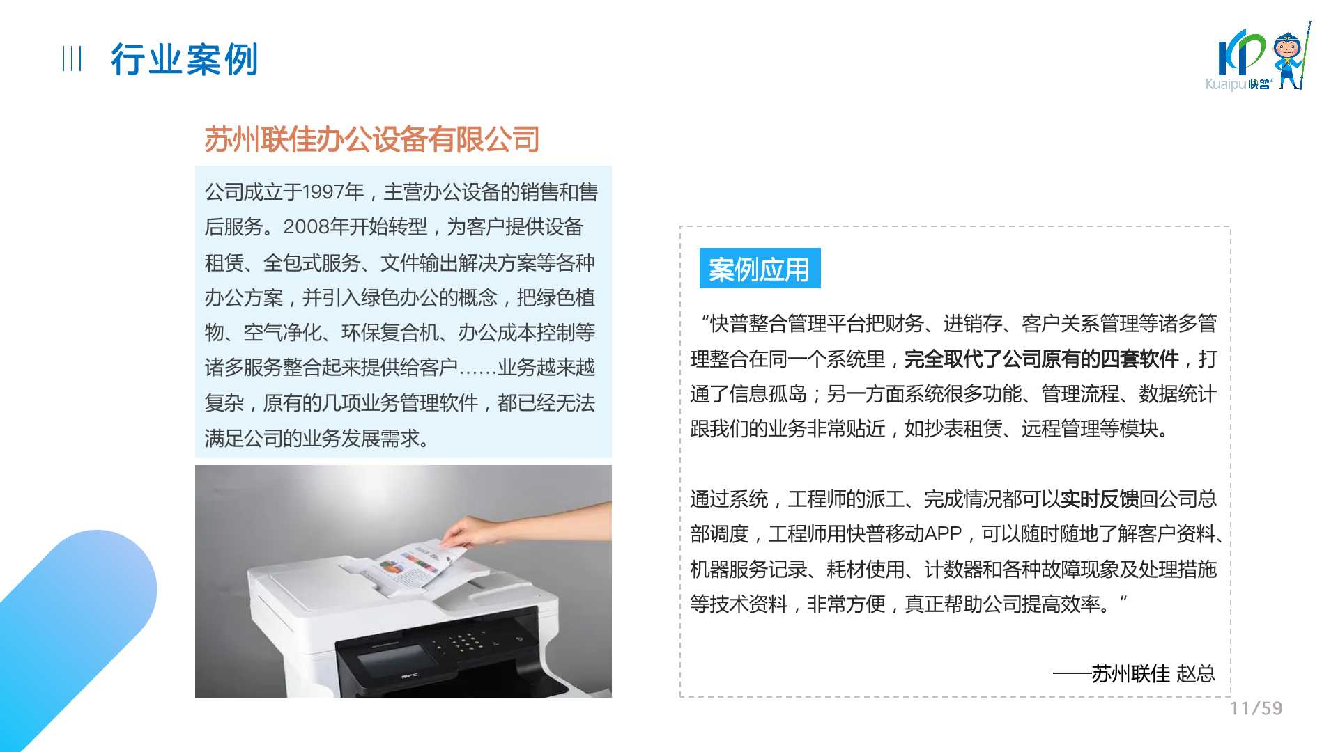 快普易30基于快普近20年在全國上萬家OA企業(yè)的實施與服務(wù)經(jīng)驗,融合了行業(yè)成功的管理智慧,以“客戶+機(jī)器”為中心提供數(shù)字化轉(zhuǎn)型解決方案,全面解決銷售、服務(wù)、租賃等多種業(yè)務(wù)模式的管理需求,以及企業(yè)經(jīng)營核算分析。