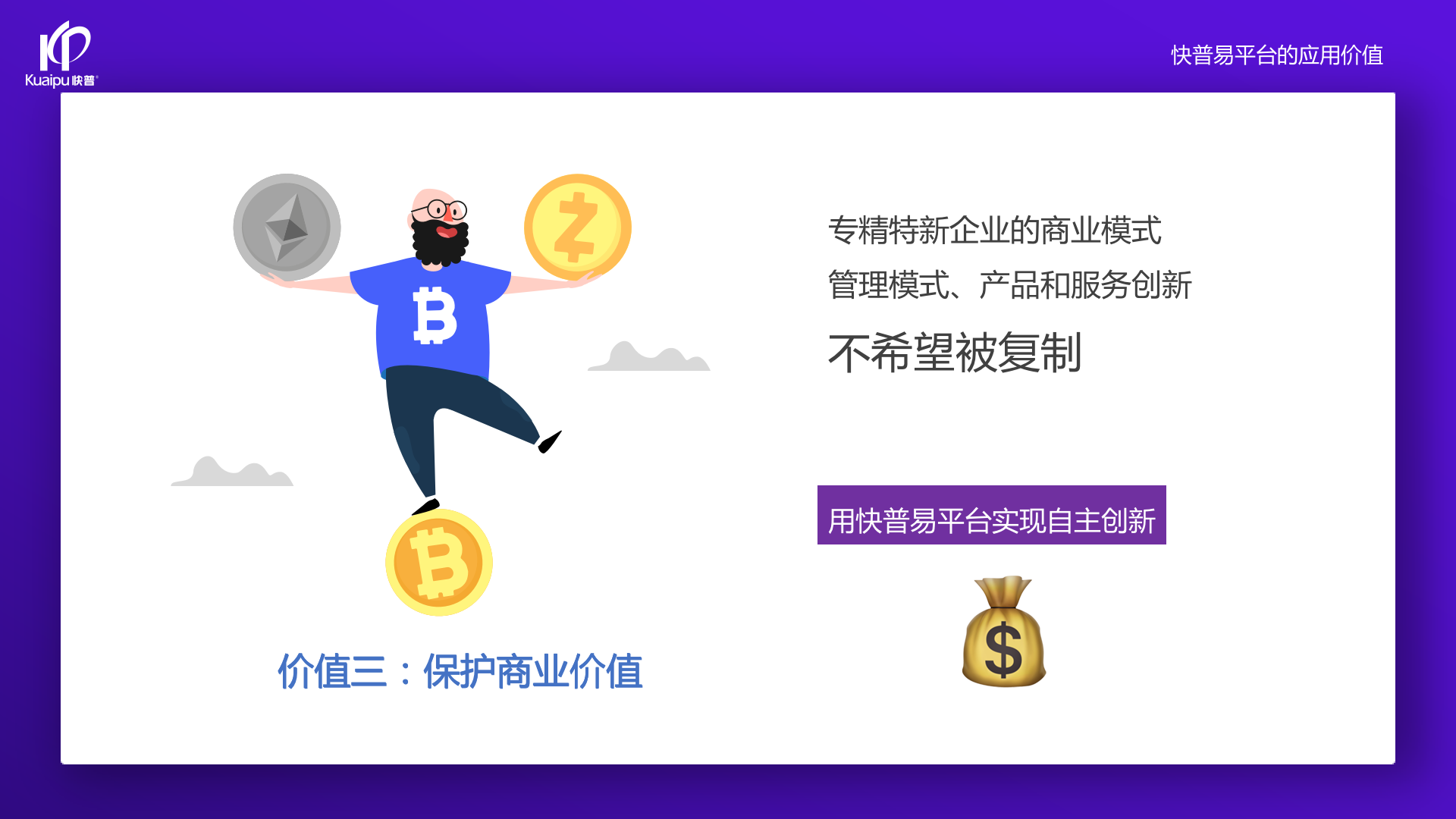 7、專精特新企業(yè)的商業(yè)模式、管理模式、產(chǎn)品和服務(wù)創(chuàng)新不希望被復(fù)制,用快普易平臺實(shí)現(xiàn)自主創(chuàng)新,保護(hù)商業(yè)機(jī)密。