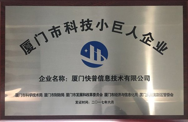 近日,福建省科技廳公布2017年科技小巨人企業(yè)名單,廈門快普信息技術(shù)有限公司憑借自身的卓越實力,在激烈競爭中脫穎而出,被授予2017年“廈門市科技小巨人企業(yè)“榮譽稱號。