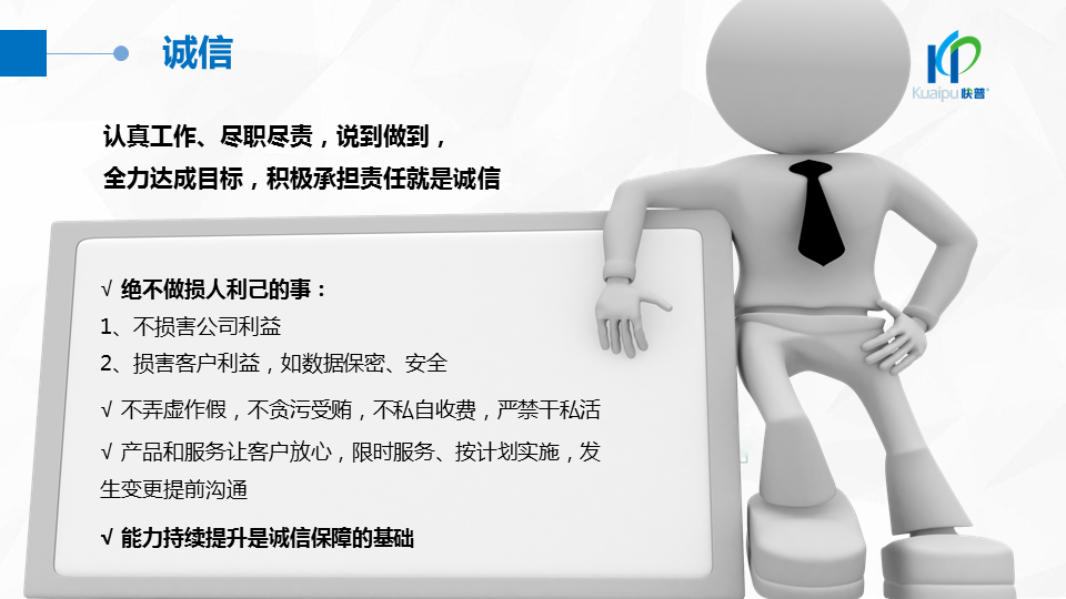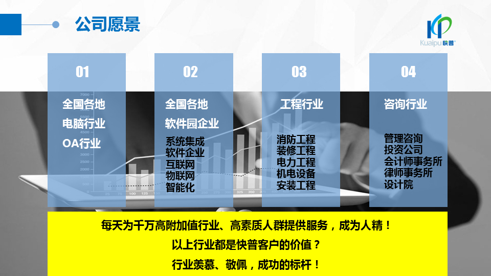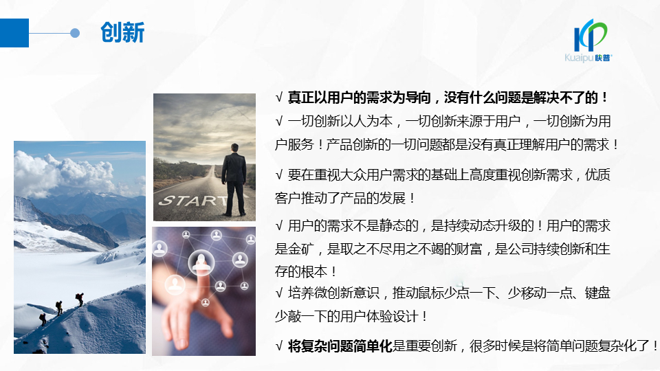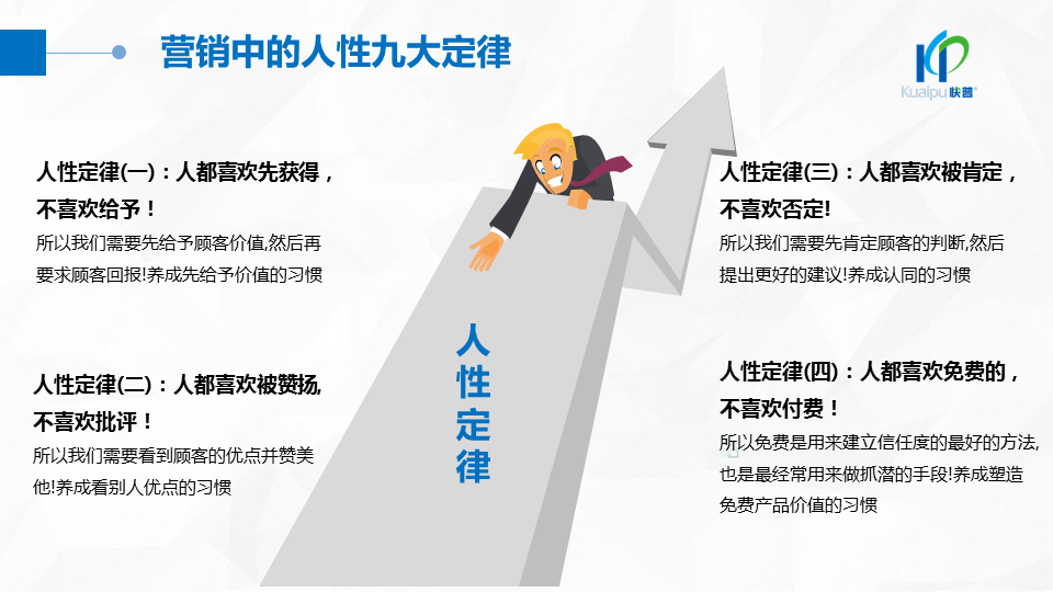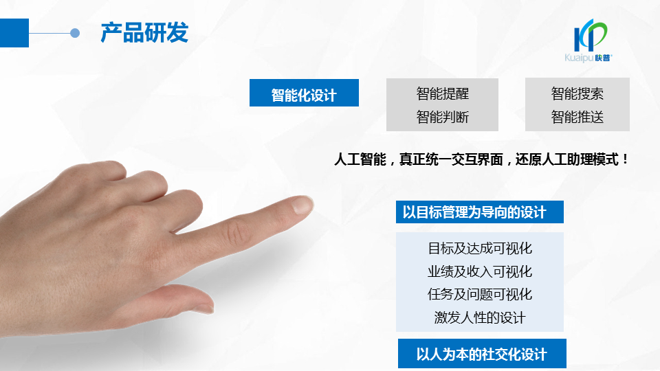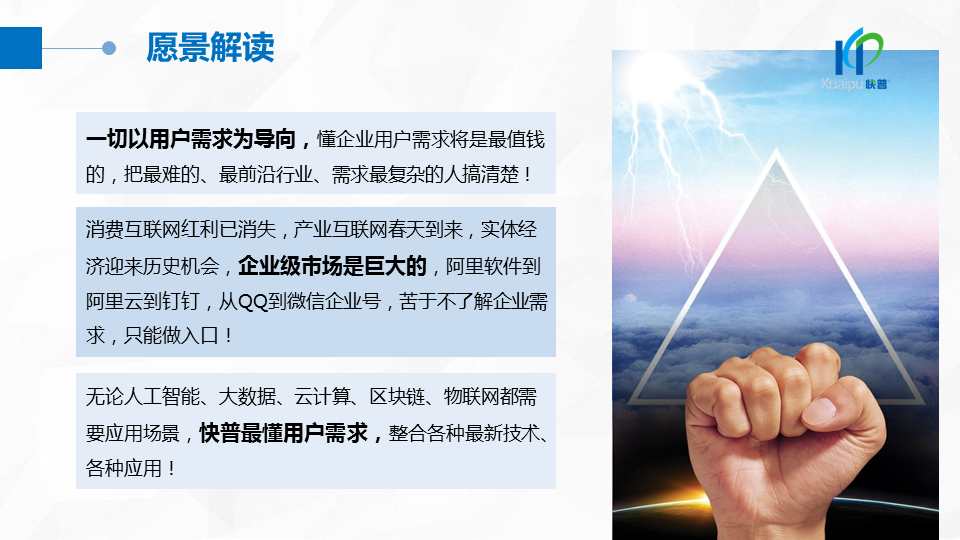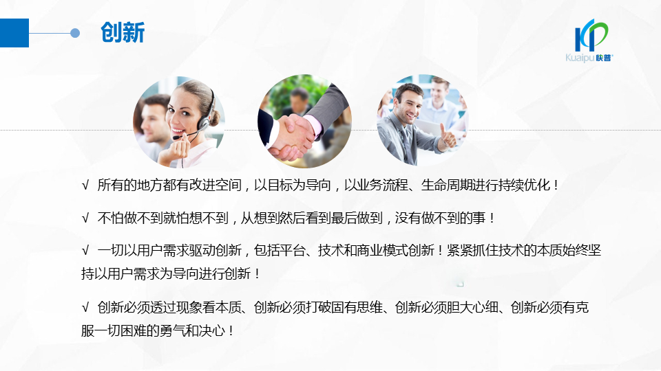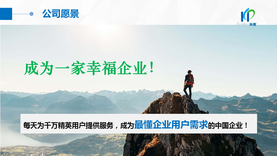 溫董在大會上指出:“成功的企業(yè)、成功的產品都在做符合人性的事!成功的個人都在挑戰(zhàn)人性弱點!作為中國企業(yè)信息化管理的服務商,我們應該充分理解人性定律,為客戶提供一切人性化的產品與服務,讓快普成為最懂企業(yè)用戶需求的中國企業(yè)!”