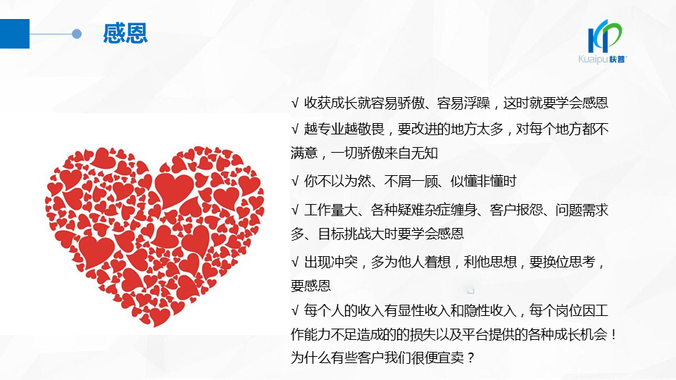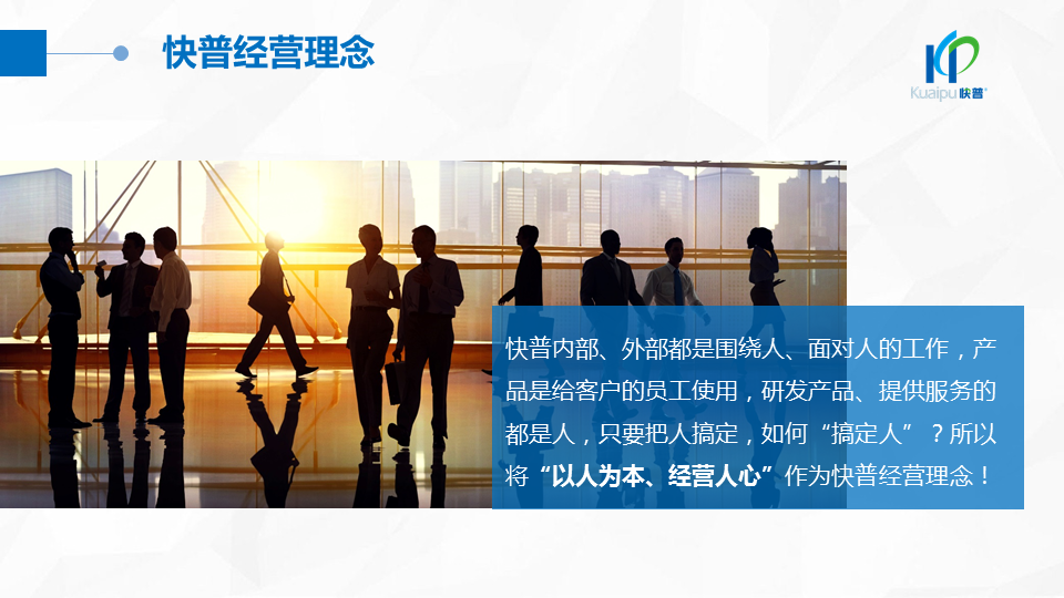 2018年9月,快普董事長溫祝平先生發(fā)表《快普經營哲學2.0》,指出“以人為本、經營人心”的經營理念,強調進一步建設“幸福企業(yè)文化”的重要性。
