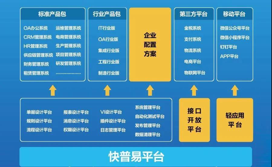 易平臺是快普的第三代戰(zhàn)略產(chǎn)品,將軟件平臺化,簡單、易用,實現(xiàn)“零代碼開發(fā)”,讓普通用戶像使用office一樣簡單,利用平臺自助配置個性需求,以不變應萬變。