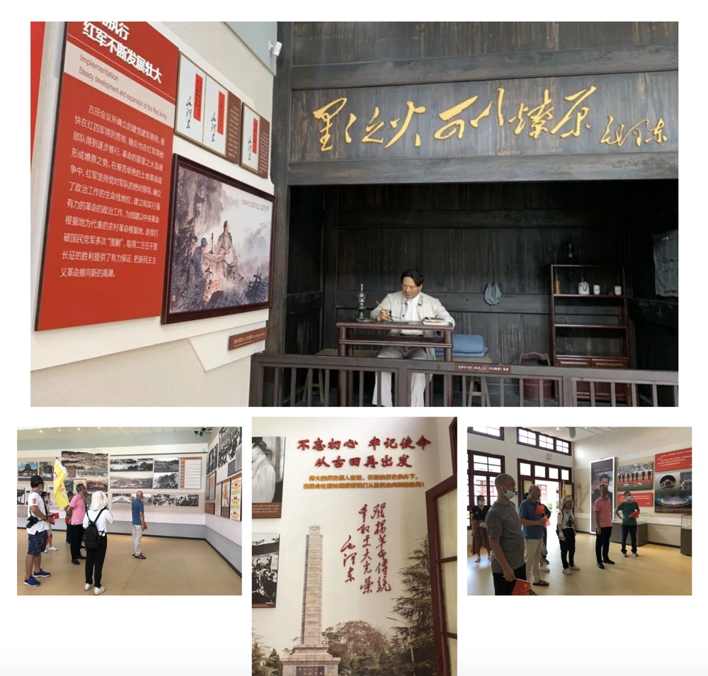 會址保持了當年的陳設,6列學生桌椅陳舊而整潔。會場正上方掛著“中國共產黨紅軍第九次代表大會”的橫幅,地板上的斑斑炭火印跡,瞬間把我們帶到了1929年那次非同尋常的會議。