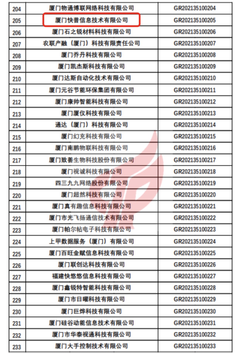 廈門(mén)快普,榜上有名!