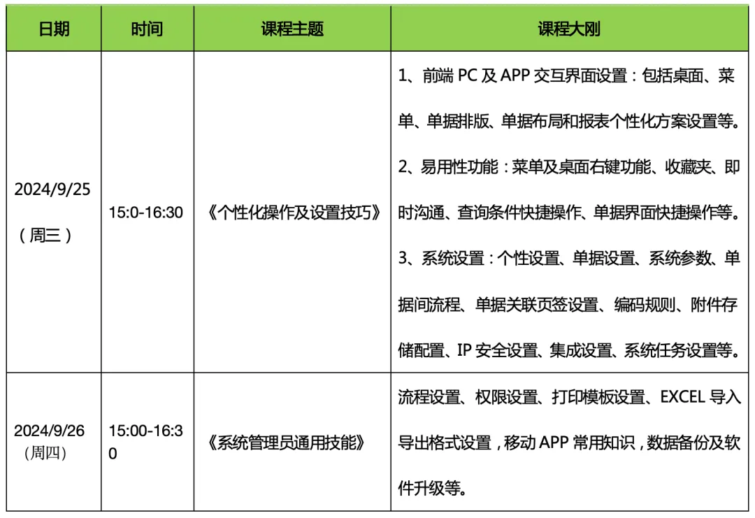 本次培訓(xùn)采取分級(jí)式、系統(tǒng)化的系列培訓(xùn),包括基礎(chǔ)夯實(shí)、中級(jí)進(jìn)階、高級(jí)深化及專題應(yīng)用四大板塊分別進(jìn)行,旨在全方位提升系統(tǒng)管理員及關(guān)鍵崗位人員的專業(yè)技能。從基礎(chǔ)操作到高級(jí)維護(hù),從日常應(yīng)用到深度挖掘。除了精彩的課程內(nèi)容外,我們還為參與培訓(xùn)學(xué)員提供持續(xù)的重點(diǎn)支持,包括匯總問(wèn)題預(yù)約遠(yuǎn)程會(huì)議一對(duì)一輔導(dǎo),解決疑難雜癥,確保培訓(xùn)成果落地。